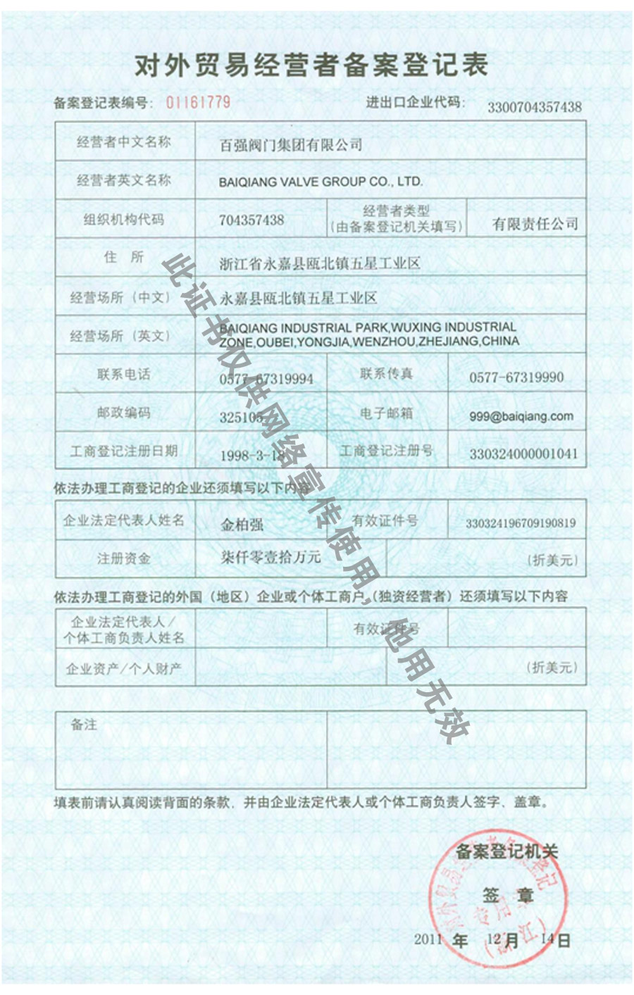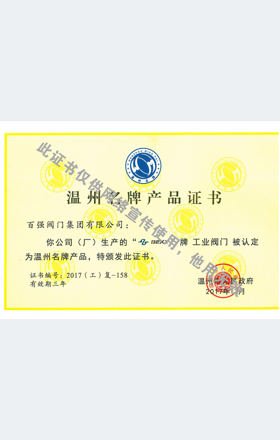 百?gòu)?qiáng)閥門(mén)集團(tuán)有限公司始創(chuàng)1998年,注冊(cè)資金1.01億元,座落在“中國(guó)泵閥之鄉(xiāng)”的溫州甌北街道五星工業(yè)園區(qū),以浙江公司為核心、上海百?gòu)?qiáng)閥門(mén)公司等為5個(gè)公司為子公司的區(qū)域規(guī)模、是集閥門(mén)研制開(kāi)發(fā)、設(shè)計(jì)、生產(chǎn)、銷(xiāo)售為一體的科技型企業(yè),集團(tuán)是省級(jí)科技型企業(yè),獲得浙江省著名商標(biāo),浙江省“守合同、重信用”AAA企業(yè),浙江省名牌產(chǎn)品,銀行資信AAA級(jí)企業(yè),浙江省泵閥協(xié)會(huì)副會(huì)長(zhǎng)單位,中國(guó)泵閥之鄉(xiāng)“泵閥三十強(qiáng)”企業(yè)。