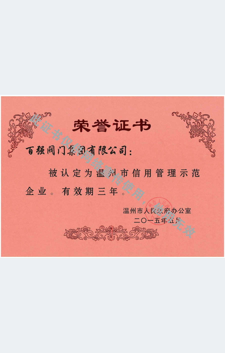 百?gòu)?qiáng)閥門(mén)集團(tuán)有限公司-質(zhì)量誠(chéng)信報(bào)告